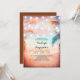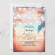 Absolutely romantic elegant and unique beach bridal shower invitation with hanging string of lights on the palm trees. Tropical and modern beach bridal shower invites with coral - peach seaside sunset. Perfect for destination island bridal shower too.
