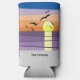 Sunset Beach - Summer Event - Branded Seltzer Can Cooler, designed for summer event and pop-up events, this seltzer can cooler features a stylized sunset and seabirds. A grey bar along the bottom (front and back) houses space for your company name, and website.