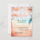 String lights, palms and pink - coral sunset at the beach wedding reply cards