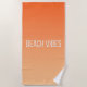VIVIDLUXE Modern Casual Style. Carry the sunset with you to the shore! This Beach Towel features a smooth gradient from deep orange to soft beige, mirroring the warm glow of a perfect beach evening. The bold, modern 'BEACH VIBES' typography makes a stylish statement. This large, absorbent towel is your essential companion for sunny days at the beach or by the pool.
