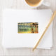 romantic sunset beach wedding address labels with string lights hanging on the palm trees.