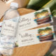 Personalized water bottle labels for your wedding guest welcome gift bags or wedding reception water station. This charming design features a watercolor scenes of a wooden wedding ceremony pagoda and a tiki cocktail bar on an oceanfront beach. Perfect for a casual or boho beach wedding, coastal chic or classy beach resort destination wedding. Background and text have a natural and brown colour palette, which you are welcome to change in the design tool. Co-ordinating wedding stationery and day of event decor can be found in our Sunset Beach Wedding collection,