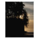 A sunset silhouette of a tree covered bluff, on the coast of Washington.