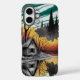 Capture the mystery and solitude of wilderness with this atmospheric phone case featuring a lakeside cabin, mirrored reflection, and dramatic sunset sky. The bold mix of warm orange, deep green, and monochrome detailing brings this moody forest scene to life.