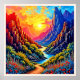 Dive into the breathtaking spectacle of this fantasy mountain valley artwork. This highly detailed, unique digital print captures the electric beauty of an unreal landscape, where fiery red peaks meet cool, deep blue shadows under a dramatic sunset. The composition, featuring a winding river and colourful wildflowers, is an emotionally engaging visual feast. Initially created by AI, a skilled artist then meticulously enhanced the design for superior uniqueness and creativity. This SEO optimized print is a perfect statement piece for modern decor, injecting bold colour and wonder into any space. Place your order today and embrace the joy of owning this stunning, unforgettable scene!