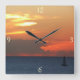 Sunset Clouds and Sailboat Seascape Square Wall Clock