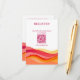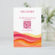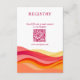 Showcasing modern abstract sunset waves in 2026 bold sunset colours—vibrant coral, warm orange, pink and yellow—this card blends contemporary style with practical functionality. The pink font and clean layout ensure the QR codes and text are easy to read while maintaining a cohesive, elegant look across your wedding stationery suite.
