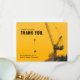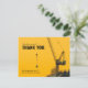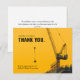 A minimal construction team themed thank you flat card featuring a simple black and yellow monochrome design. It features a construction crane silhouetted towards the foreground with a simple thank you towards the side. On the inside is an additional area for your own specific thank you message to your construction and engineering team and/or clients.