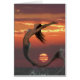 Lovely mermaid breaches the ocean's surface at sunset
