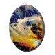 A dartboard featuring a photo of a sunset.
