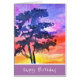 Beautiful colourful landscape sunset dreaming painting by artist Sacha Grossel of a red yellow and purple sunset landscape in the outback with a tree shadow in the foreground. Colourful original art in watercolor style.