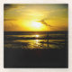 This glass coaster displays photography of Bude beach in Cornwall. Taken at sunset, the light glows on the horizon, reflecting beautifully upon the rippling waves.