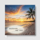 A serene beach scene features a stunning sunset, with vibrant orange and blue hues painting the sky as gentle waves kiss the sandy shore for a memorial service or funeral.