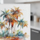 Add a vibrant touch of tropical serenity to your tabletops with this stylish glass coaster, showcasing the captivating "Sunset Grove" watercolor design. Palm trees with rich, warm hues of orange, brown, and green stand tall, their fronds rendered with fluid artistry and subtle splatters for a dynamic feel. Perfect for protecting your surfaces in unique, natural elegance.