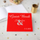 Romantic sunset shades in golden yellow to pink hearts on red. Personalize with the bride and groom's first names and date wedding in white script on front cover. Personalize back of book with two hearts and the couple's monogrammed initials written inside. Our Love Story is written on spine of book. Have the wedding guests sign your wedding guest book as a lovely keepsake book. Original Artwork design by TamiraZDesigns.