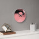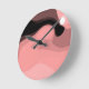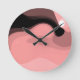 Sunset Horizon: Abstract Pink, Black & White Round Clock