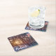 Sunset in snowy pine forest with sun ray square paper coaster