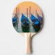 Peaceful setting next to the Doge's Palace in Venice, Italy, with four gondolas, all together pointing to a beautiful misty sunset.
