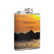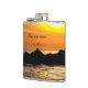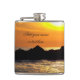 Flask with a beautiful sunset and a bird sitting on the rocks, You can customize the flask with your name or special saying. art by Elenne Boothe