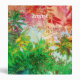 Lush jungle tropical palm leaves spilling out on a vividly sunny backgound.