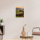 A poem displayed over a photograph of palm trees near a lake at sunset. The poem goes like this: "And so the sun's golden light softly glows through the blooming flowers, It's warm golden light, brings pleasant feelings during my hardest hours. The breezes against my face bring scents so sweet, It brings me out of my lonely and depressed retreat. The birds and frogs sing in their happy and playful delight, which helps me to learn that living should be happy and relaxed, not a crazy fight." --- If you select a different poster size, after you do so, click on the 'enlargement symbol' to see if you like how the print with text looks. If text looks cropped off, choose and different size to see if that helps. --- --- Photograph & poem is copyrighted by the photographer, Christina Spiegeland.