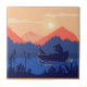 Sunset Lake Canoe Illustration Tile