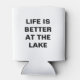Foam Can Cooler with Sunset Lake Logo and "Life is Better at the Lake" text