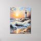 Capture the peaceful beauty of the seaside with this impressionist-style art print featuring a lighthouse illuminated by the setting sun. Warm orange and soft pastel tones blend with powerful waves, creating a calming and hopeful atmosphere. Perfect for coastal homes, beach cottages, or anyone who loves serene ocean views and classic maritime themes.