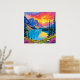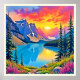 Bring the breathtaking beauty and emotional tranquillity of the Rocky Mountains into your style with this vibrant landscape painting. The artwork features towering snow-capped mountains perfectly mirrored in a serene alpine lake. Above, a vivid sunset casts fiery pink and orange hues across the sky, creating a truly majestic and calming scene, complete with lush green pine trees and a foreground of pink wildflowers. This stunning piece was created using cutting-edge AI generation and then meticulously edited by a skilled artist to enhance its uniqueness, texture, and creative depth. The result is a high-quality, distinctive nature art print. Perfect for home decor that seeks an escape to the wilderness. Place your order today and embrace the joy of owning this peaceful, colourful masterpiece!
