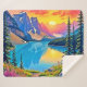 Sunset Mountain Lake Majesty Art Sherpa Blanket