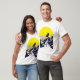 Create a vibrant, eye-catching T-shirt design that captures a playful, upbeat vibe. Incorporate bold, contrasting colours and retro-inspired elements like wavy lines or abstract shapes. The design should feel unique and expressive, radiating energy and personality for the wearer."