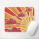 A gold and orange sun sets and the wind blows red and pink clouds across the sky. Mousepad with a gold, orange, red, pink and white customizable design for you to personalise with your own text, images and ideas. An original coloured pencil and metallic ink drawing by Jess Perry.