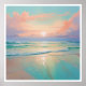 Sunset on a tranquil beach landscape. Soft pastel watercolor illustration. Decorative wall art.