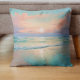 Sunset on a tranquil beach landscape. Soft pastel watercolor illustration. Decorative wall art.