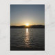 In Pittsfield, Massachusetts, the sun rests on a low, silhouetted mountain range behind Onota Lake. The water spans from the base of the mountains to a bit of dark shore at the bottom of the photograph. Ripples cover the lake's surface and break up the golden reflection of the sunset.