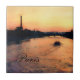 Enchanting Travel Art! Twilight in the City of Lights as the sun sets over in Paris with a boat gliding up the River Seine and the Eiffel Tower silhouetted on the skyline. Sweet gift for anyone who dreams of romantic evenings and Paris. Turn this tile into a wonderful trivet that you'll enjoy using when you're cooking up something French!