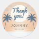 Express your gratitude in style with these vibrant thank you sticker! Featuring a halftone sunset backdrop adorned with two silhouette palm trees, this sticker adds a touch of beach vibe to your appreciation. Personalize it with your name and date to create a memorable keepsake for your guests.