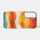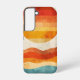 A retro-styled sun hovers over colourful layered lines and a deep blue sea, evoking a cosmic and peaceful sunset.