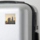 Souvenir photo magnet with the skyscrapers in the skyline of the commercial centre of Doha, the capital of the Arabian Gulf country Qatar at sunset.