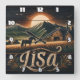 Sunset Over Farm With Horse and Barns in Mountains Square Wall Clock
