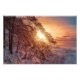 Sunset over sea and snowy pine tree photo print