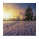 Sunset over snowy winter park tile