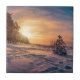 Sunset over snowy winter sea coast tile