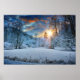 Sunset Over Winter Forest Lake Poster