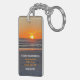 Porte - clé avec belle photo de plage au coucher du soleil et citation "An Ocean Breeze Puts A Mind At Ease...". Idéal pour les vacances et la location de plage maison de location. Conception de Jenn's Emporium.