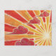 A gold and orange sun sets and the wind blows red and pink clouds across the sky. Postcard with a gold, orange, red, pink and white customizable design for you to personalise with your own text, images and ideas. An original coloured pencil and metallic ink drawing by Jess Perry.