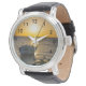 Wrist watch featuring a vertical photo of a leaning sailboat shipwreck during sunset Gulf Breeze, Florida, United States in the Pensacola Bay area. Looking for more products? Visit my store: http://www.zazzle.com/timelessmomentsphtgy