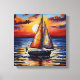 A lone boat drifts peacefully on the water, bathed in the warm glow of a breathtaking sunset. The sky is painted with rich hues of orange, pink, and purple, reflecting beautifully on the rippling waves. This artwork evokes a sense of tranquillity and adventure, perfect for those who love the sea and the magic of dusk.
