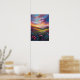 A mesmerizing symphony of colours unfolds in this classic oil painting digital art. Pink and blue flowers dance in the foreground, their petals capturing the golden hues of a breathtaking sunset on the horizon. Nature's elegance immortalized on canvas.