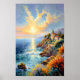 Immerse yourself in the tranquil beauty of "Sunset Serenity by the Mediterranean," a breathtaking AI-generated Impressionism coastal landscape artwork poster capturing the golden hues of a sunset over a picturesque coastal village. The scene is a harmonious blend of vibrant colours and soft brushstrokes, depicting the sun's warm glow as it reflects off the calm waters, with waves gently kissing the rocky shore. Cypress trees stand tall beside charming Mediterranean villas, creating a serene and inviting atmosphere. This artwork is perfect for those who appreciate the serenity of nature and the charm of coastal landscapes. Ideal for enhancing the ambiance of living rooms, bedrooms, or offices, this piece evokes a sense of peace and relaxation. This unique work of art was produced by AI, combining advanced technology with a deep appreciation for natural beauty, resulting in a stunning visual experience.